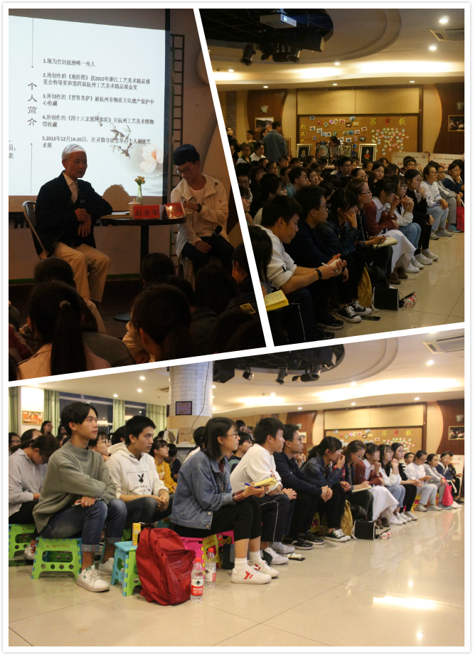 10月27日晚上,第十二期幸福书苑·阅享沙龙在咖啡吧成功举办。本次活动有幸邀请到了省、市工艺美术和省民间美术家协会会员,浙江省及杭州市非物质文化遗产项目代表传承人,浙江省工艺美术大师赵亦军老先生,本期阅享沙龙由医检1602班傅寅旭同学主持。