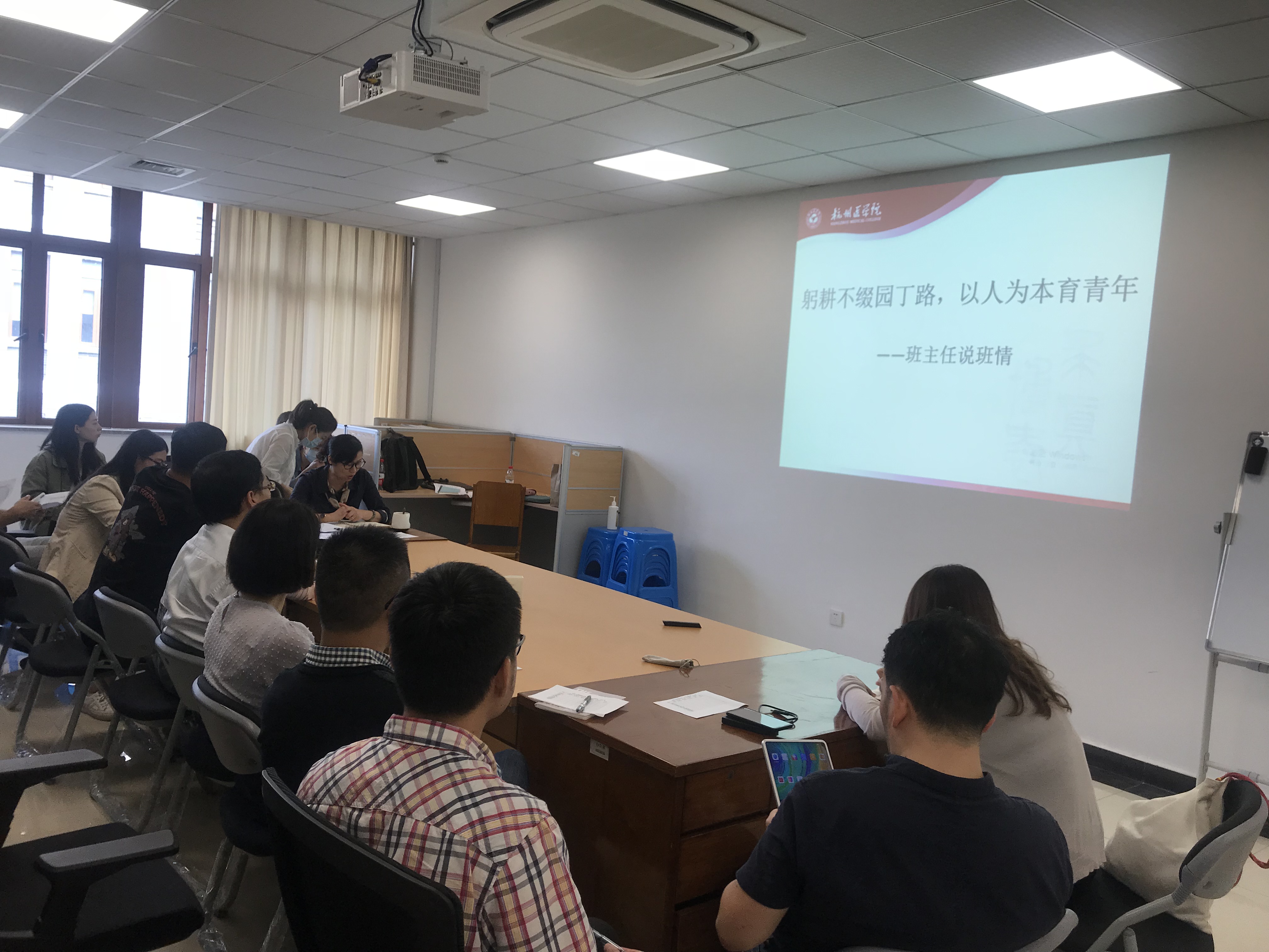 为了进一步加强班主任队伍建设,同时也给班主任工作创造良好的氛围, 9月29日下午,检验医学院在临安校区开展了2020年“班主任说班情”活动。学院党总支副书记吕霞飞老师、学院全体班主任、辅导员参加了此次活动。