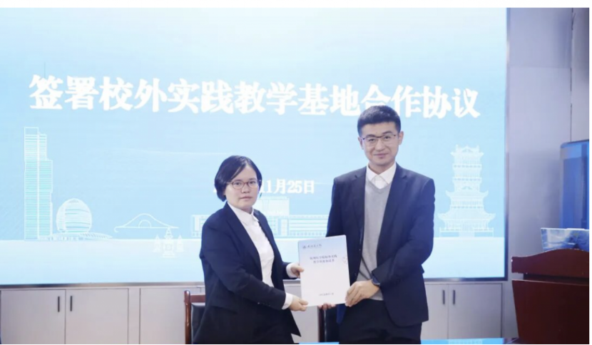 在热烈的掌声中,宋广忠与葛玉梅作为双方代表郑重签署了校外实践基地合作协议。