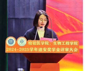 接下来由杭州医学院教务处副处长费丹华宣布迪安奖学金一、二等奖名单:荣获迪安奖学金二等奖的是张苧尹、陆心欣、沈楠、吴佳乐,荣获迪安奖学金一等奖的是宋烨莎和翟华倩。从学术成果到社会实践,从科研创新到道德品质,这群从杭医检生学子之中脱颖而出的佼佼者,用他们的故事和成就,让大家听见了努力的回响,更向同学们展示了杭医检生学子的风采与担当。
