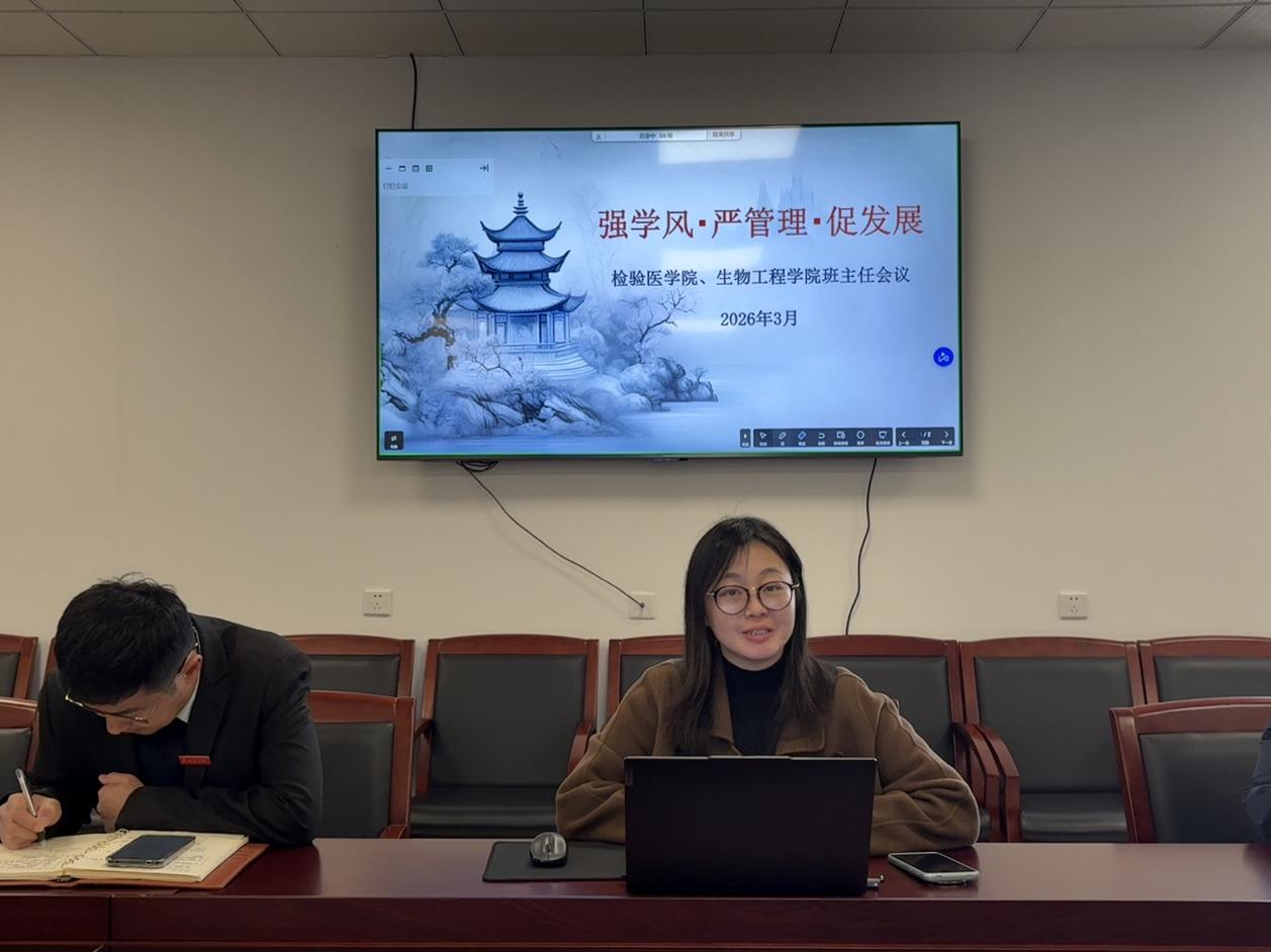 为抓实班级管理核心工作,破解学风建设与升学就业痛点,凝聚全员育人协同合力,切实提升人才培养质量,3月11日中午,检验医学院、生物工程学院召开班主任工作专题会议,学院全体班主任、辅导员参会,会议由学院副书记陈阳阳主持,围绕学业建设、班级管理等工作展开部署与经验交流。