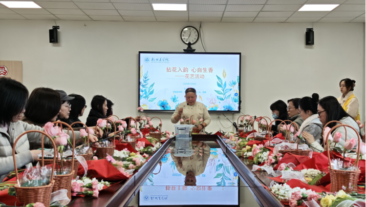 为庆祝第116个“三八”国际劳动妇女节,丰富女教职工和女学生的精神文化生活,提升艺术修养,营造温馨和谐的校园文化氛围,3月6日下午,在校工会、妇联的指导下检验医学院、生物工程学院分工会在11号楼404室,联合学院分团委共同举办了以“拈花入韵 心自生香”为主题的花艺活动。现场50余名师生欢聚一堂,共同体验插花艺术,感受春日美好。