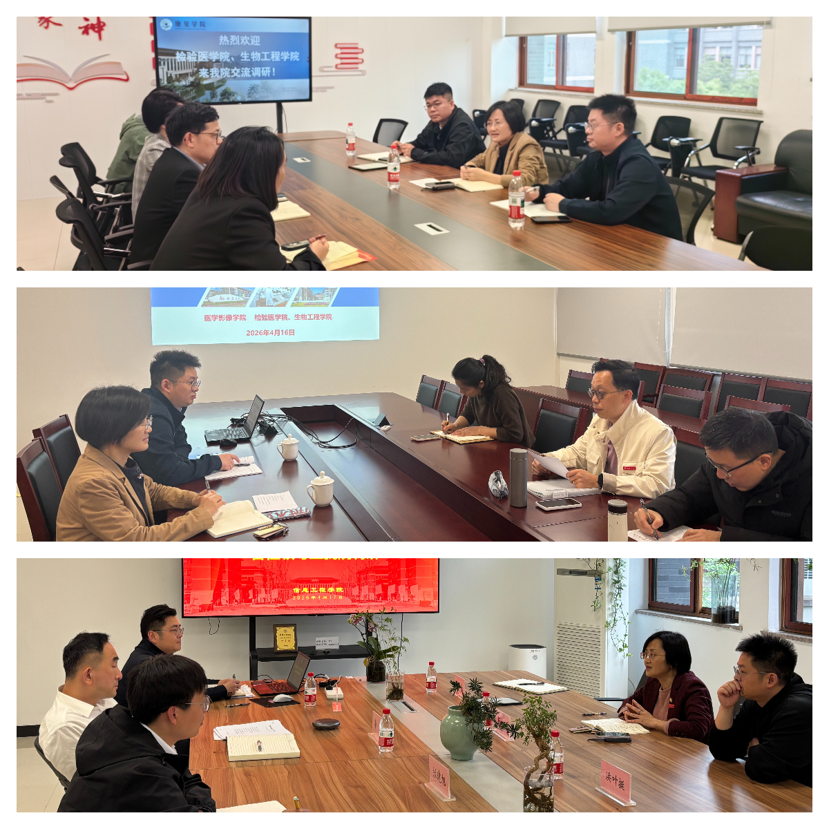 为做好医学技术省一流学科共建工作,推动学科交叉融合发展,4月15日至17日,检验医学院、生物工程学院执行院长杨珺带队,先后前往康复学院、医学影像学院、信息工程学院,与各学院负责人及骨干教师开展专题研讨。
